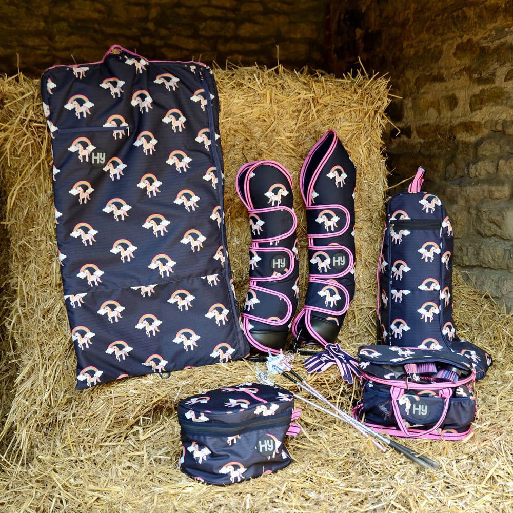 Complete your matching set with this limited edition Unicorn Hat Bag. It’s the perfect addition to your riding and competition kit! Featuring 600 denier waterproof ripstop outer material in our magical unicorn fabric, a double zip opening, an external poc